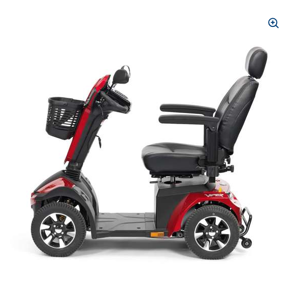 The Viper Scooter offers modern styling and a whole host of excellent features. These include modern state of the art controls, one touch tiller adjustment and delta bars as standard. The Viper features fully independent front and rear suspension, large 14" stylish alloy wheels and an ergonomic adjustable seat. The seat is comfortable, rotating and features a sliding and reclining facility to best suit the user.