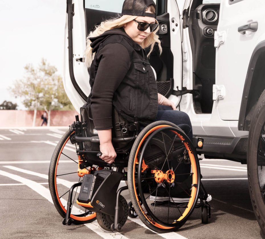 The Empulse R90 is compatible with most rigid and folding wheelchairs. The reciever brackets don't interfere with chair components, and still allow folding chairs to fold.
