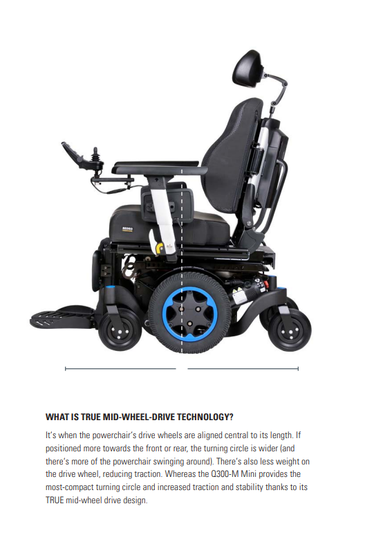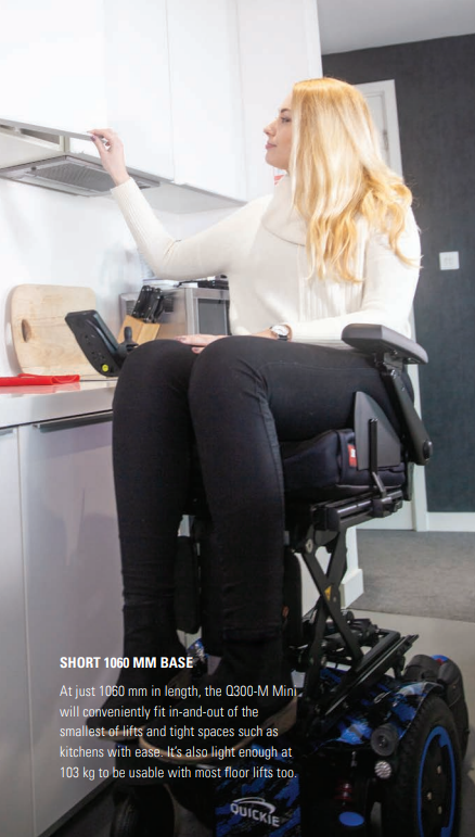 Since its introduction in 2019 the Q300 M Mini has been the most popular powerchair in the UK; 52cm wide for best-in-class indoor manoeuvrability, a comfortable and adjustable seating system and outdoor capabilities that outperform its size.